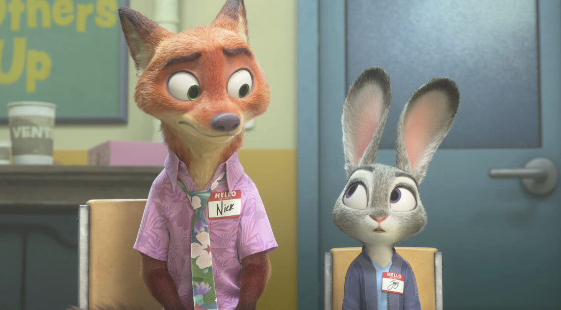 Out to prove themselves as detectives, Judy and Nick cause widespread damage through the city chasing a criminal, leading Idris Elba’s surly cape buffalo Police Chief Bogo to order them into a therapy session for dysfunctional partners. (Other members include an elephant and mouse duo.)