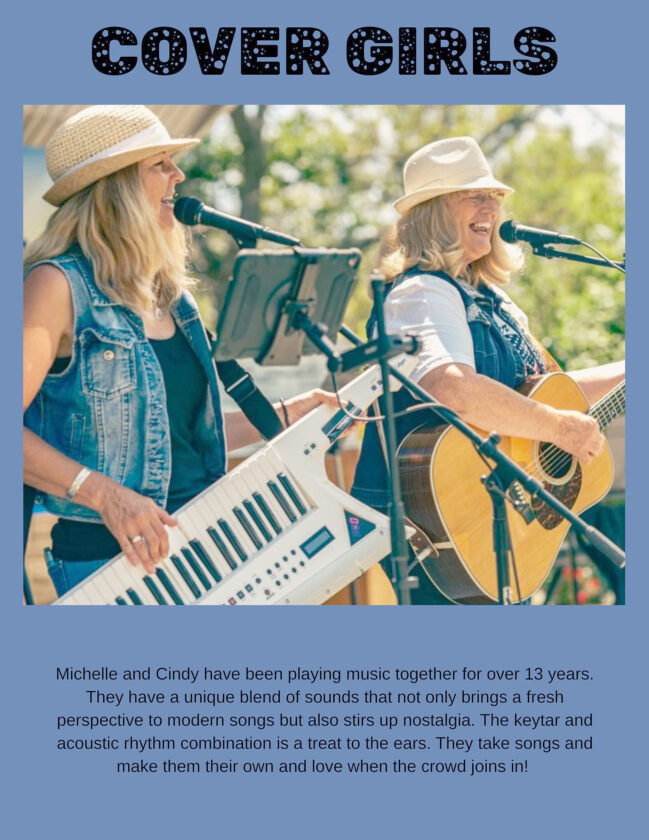 The name of the band is Cover Girls, which consists of Michelle Czygan and Cindy Collins. They have a unique blend of sounds that not only brings a fresh perspective to modern songs but also stirs up nostalgia. They take songs and make them their own, and love when the crowd joins in!