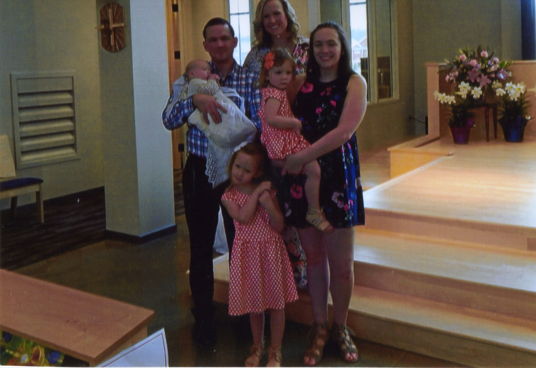 Courtesy photo Grace Ann Flagstadt, born Jan. 3, 2017, was baptized April 30, 2017 in a baptismal gown over 90 years old. The gown was made by Grace’s great-great-great-grandmother Victoria Pepin Fillion. Pictured is Grace being held by her dad, Joe, who was also baptized in this gown along with his daughters, Giava, 15, Hope, 2, and Madelyn, 4, and her mom, Tiffany. The Flagstadt’s currently reside in Allendale, Mich. Harold and Carol Flagstadt of Gladstone are the girls grandparents.