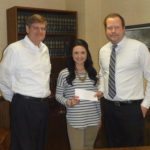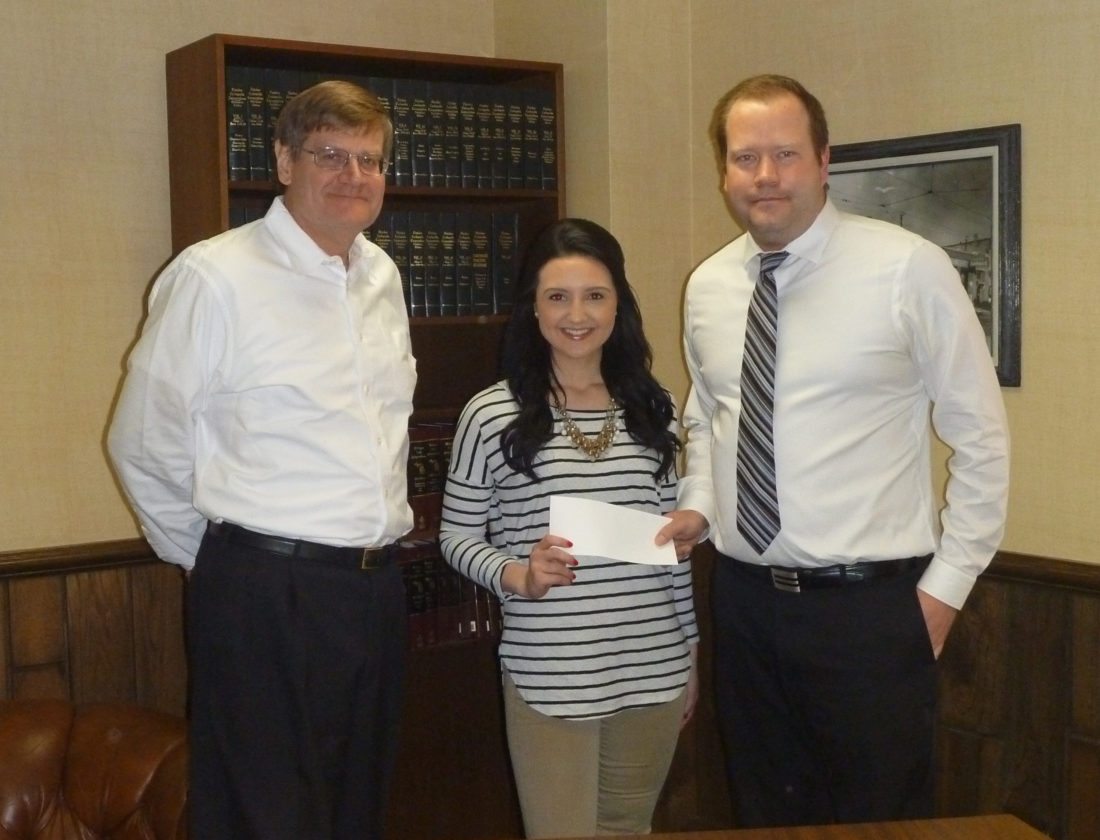 - Courtesy photo Emily Gudwer, scholarship recipient, stands between Terry Burkhart, President of Burkhart, Lewandowski, Miller & Nastoff, P.C., left, and Attorney Jeremy Nastoff, right, of Burkhart, Lewandowski, Miller & Nastoff, P.C. and current board member of the LSBAI.