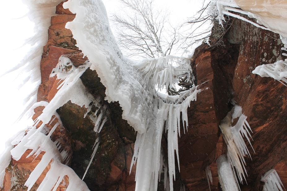 Jim Rose photo Ice near Lake Superior makes stalactites on rock formations.