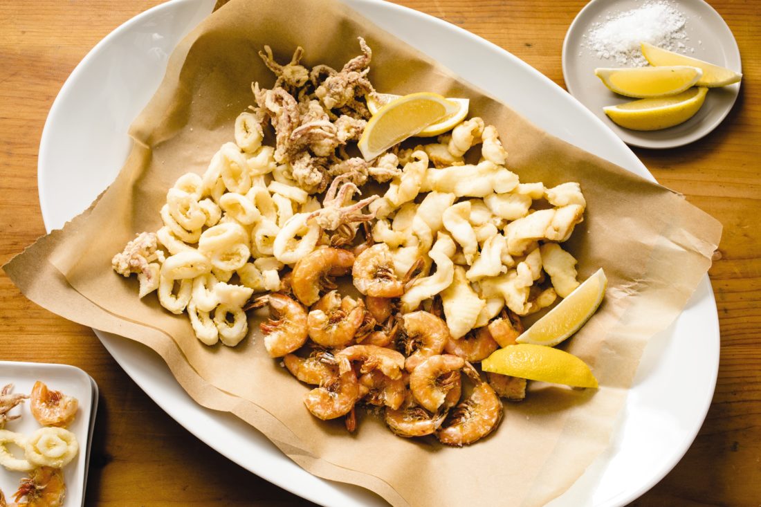Mixed fried seafood — or fritto misto di mare — can be found throughout Italy; however, the most iconic and evocative incarnation hails from Campania. Indeed, it’s easy to imagine sitting in a Neapolitan trattoria eating crisp, piping hot tidbits of fried seafood while looking out on the Bay of Naples.
