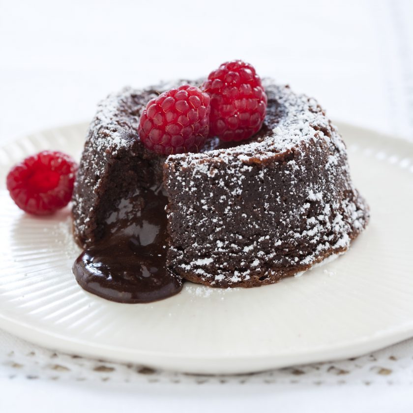 Beating the egg whites and yolks separately and then folding them together as some recipes instruct resulted in a cottony cake; we found that beating the eggs with sugar to a foam and then folding them into melted chocolate delivered cakes with the rich, moist texture we wanted. A mere 2 tablespoons of flour did an able job of holding the souffle-like cakes together — any more and the cakes were dry, with no fluid center.