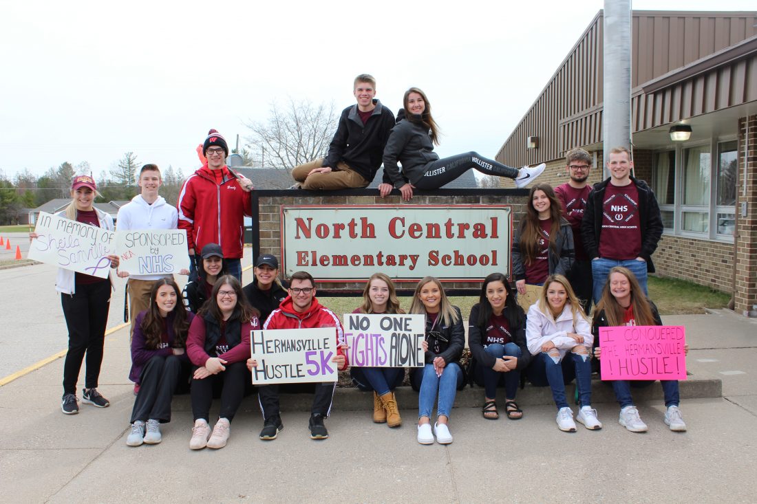 Courtesy photo The National Honor Society chapter from North Central High School poses for a photo after running the 6th annual Hermansville Hustle 5K Saturday, April 27. The event is a fundraiser held in honor of former NHS adviser and teacher Sheila Sanville, who passed away in 2015 after a long battle with lung cancer. Proceeds from the event help the chapter complete annual service projects and hold its induction banquet. Some of the proceeds will be donated, as well.