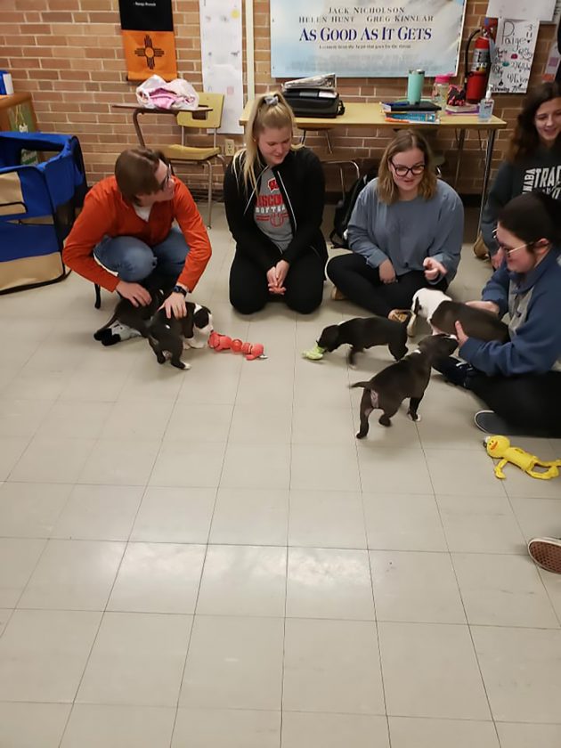 Courtesy photo Courtesy photo Escanaba High School students play with puppies during exam week.