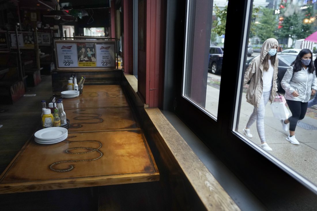Passers-by walk past an empty restaurant, left, Wednesday, Sept. 2, 2020, in Boston. The spread of COVID-19 has forced people out of their normal routines and into quarantine. And while the majority of people are struggling rather than saving, some people have been able to stash more money away due to widespread closures. Avoiding restaurants, travel and other out-of-the-house expenses may have helped you accumulate some cash over the last few months. (AP Photo/Steven Senne)