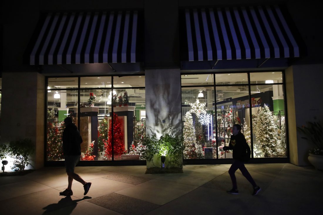 FILE - In this Dec. 16, 2019, file photo shoppers walk past a storefront with seasonal holiday products in Santa Clarita, Calif. Affording the holiday season can present a lot of challenges, especially if your household has been affected financially by circumstances related to the COVID-19 pandemic. Whether you’re trying to save, pay down debt or replenish money lost due to pandemic-related setbacks, you can stay true to your financial goals by borrowing tips from minimalists. (AP Photo/Marcio Jose Sanchez, File)