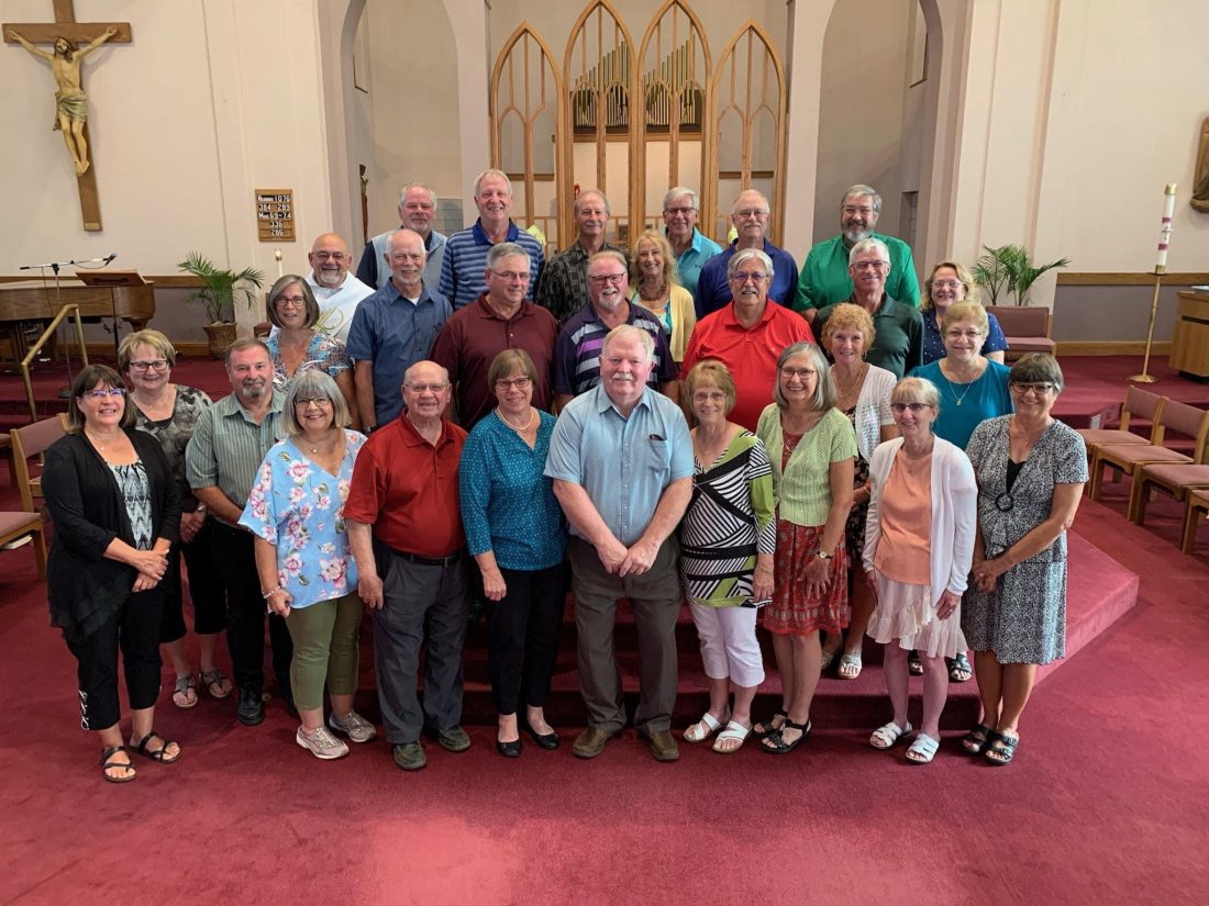 Courtesy photo Some of the members of the Class of 1971 and their spouses/significant others gathered at All Saints Catholic Church in Gladstone on Saturday evening, Aug. 14, for Mass during their 50th HNHS Class Reunion weekend.