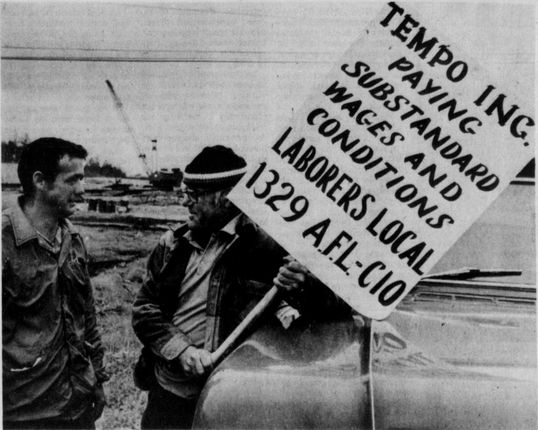 Daily Press file photo Construction workers were back on the job Wednesday, Sept. 21, 1977 after a one-day job walk-off at the Tempo Inc. project, which was building senior citizen housing units on First Avenue South and 26th Street. A company spokesman told the Daily Press negotiations between the union and company will be held to “iron out difference” in what the union claimed were “substandard wages and conditions.” Pictured are Rod Wills, of Gladstone, left, and Walt Lewis, of Escanaba, member of the Laborers Local 1329 as they picketed at the site.