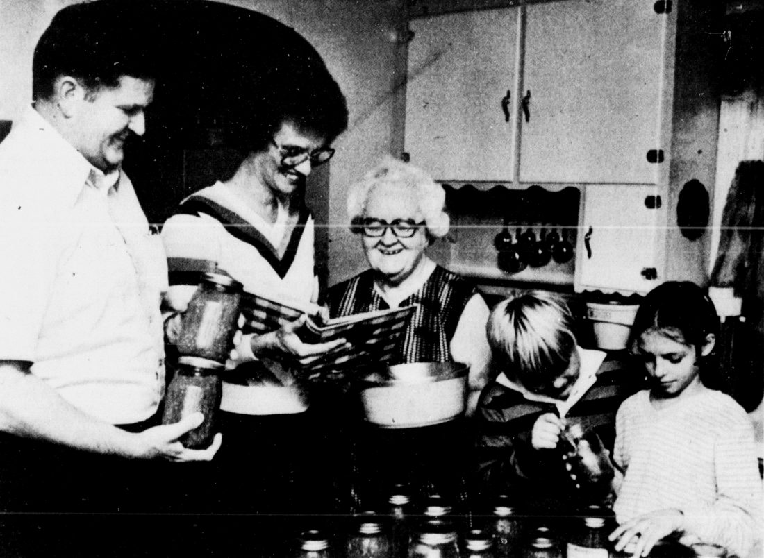 Daily Press file photo Members of the George Peterson family of Escanaba are getting a head start collecting recipes for the Daily Press Holiday Cookbook in this photo originally published today in 1981. From left, George; his wife, Marie; mother, Adele; son, Greg; and daughter, Margie have their hands full canning tomatoes and writing down the recipe for publication. The book was scheduled to be published in November 1981.