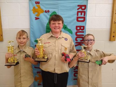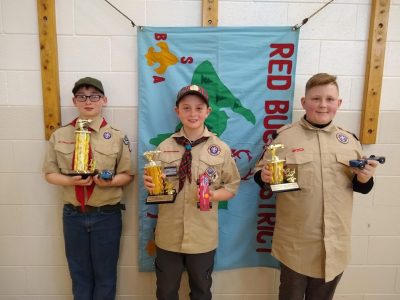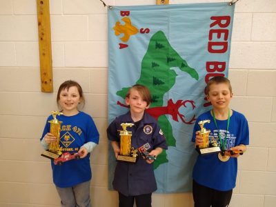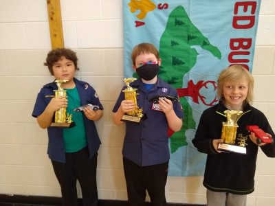 Webelo winners: 1. Myles Nelson (P-411), 2. Michael O’Neal (P-408), 3. Wyatt Caron (P-411)