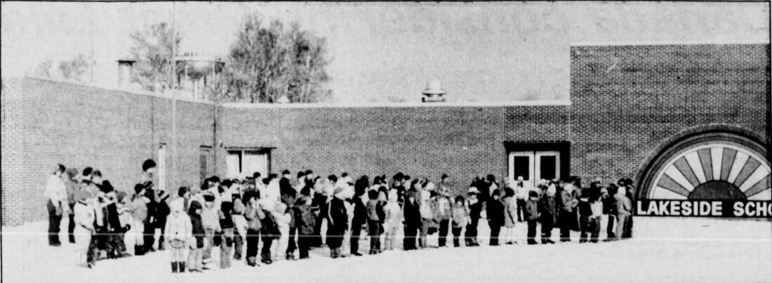 Students at Lakeside School in Manistique had an opportunity to understand the cramped quarters shared by passenger of the Mayflower on their voyage to the New World. In this photo, originally run in the Daily Press on Nov. 29, 1985, the 146 students and teachers outlined the shape of the 90-by-20-foot vessel in the school parking lot. There were 132 people on board the original Mayflower, one of the first ships to land in the new World. Students studied the Mayflower story for Thanksgiving.