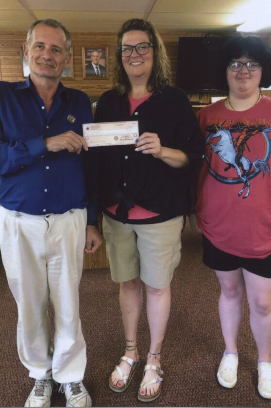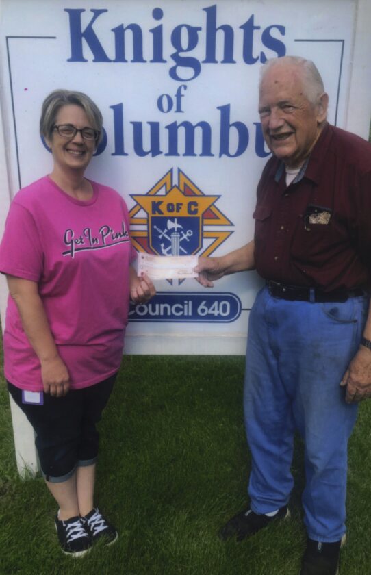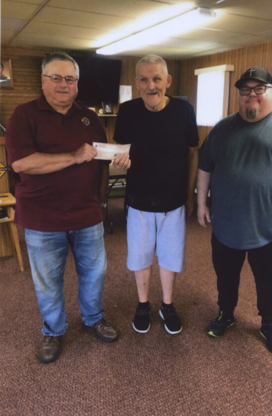 The Knights of Columbus Council 640 of Escanaba recently distributed funds from its annual Michigan “Tootsie Roll Drive.” Funds were presented to Adule Learning Systems UP Inc., Bridgewood Central, Pathways, Bay Cliff Health Camp and the Escanaba Rotary Club for Camp Harstadt. Each organization received a check for $843.16 to help their programs for the mentally impaired. In the far left photo, Knight Sherwood Hoholick, right, presents a donation to Crystal Sarasin of Pathways. In the center photo, Knight Bob Tourangeau, left, presents a donation to Bob Dieter and Mike Leonard of Bridgewood Central. In the far right photo, Knight Lonny Breitzman, left, presents a donation to Cheryl Starnes and Kristina Seger of Adule Learning Systems UP Inc.