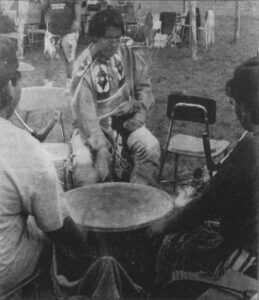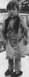 In these photos, which ran today in 1993, participants in a pow wow held at the Tri Township School in Rapid River are shown. At left, an unidentified tribal member prepares for Saturday’s grand entry. At right, two-and-a-half-year-old Kristen Corbiere, of Escanaba, waits for her mother to take her home after the pow wow. Corbiere is a member of the Odawa tribe and her Native American name is Ma Konse Quay, which means “Little Bear Woman.” Approximately 1,200 people attended the event, which was the fourth annual. The event included a spiritual conference, craft contest, and a feast.