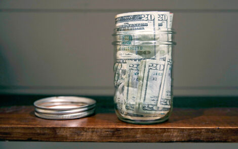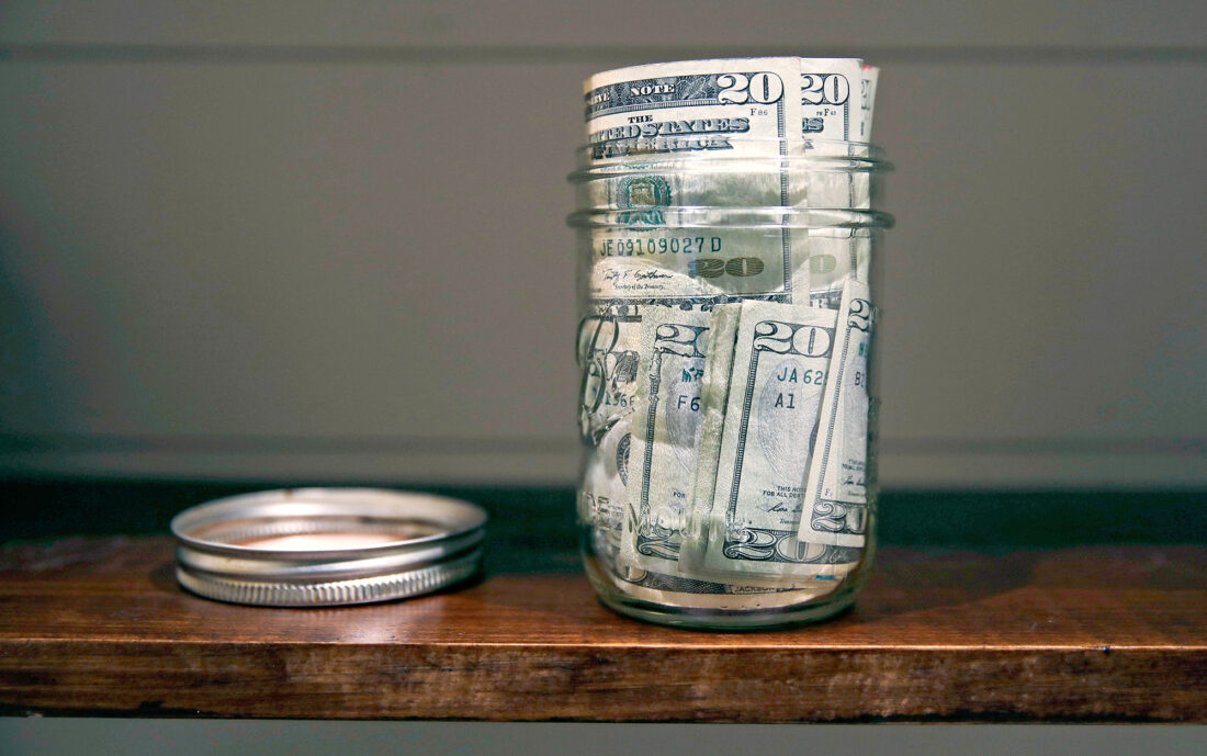 A canning jar filled with money sits on a shelf in East Derry, N.H. (AP Photo/Charles Krupa, file)