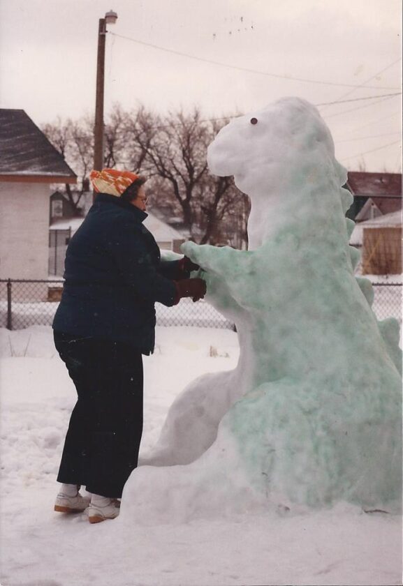 Kids from age four to eighty-four can join in the fun of creating something out of snow. It is a great way to cope with the long winter months.