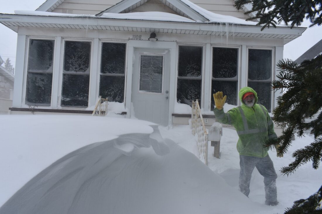- A snowdrift waves and so does my husband during the winter storm Elsa. (Karen Wils)
