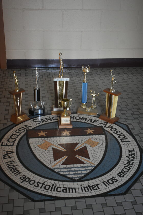On a shelf in what is now St. Thomas’s parish hall that used to be eight classrooms, sits many antique basketball trophies from those good old days.