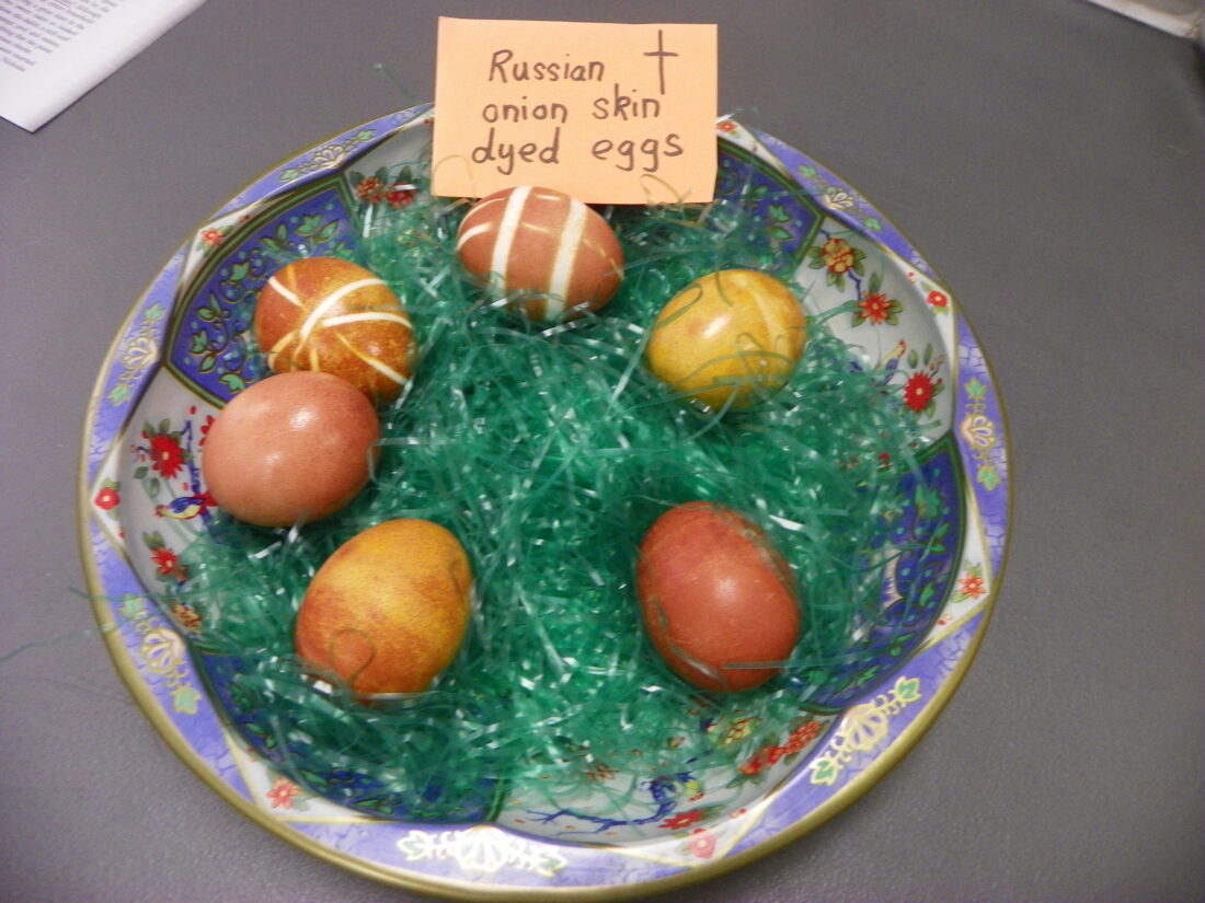 The children explained that Pa, Boris and Harry from the Bay shore all came over and showed them how to do old-fashioned Russian egg tapping.