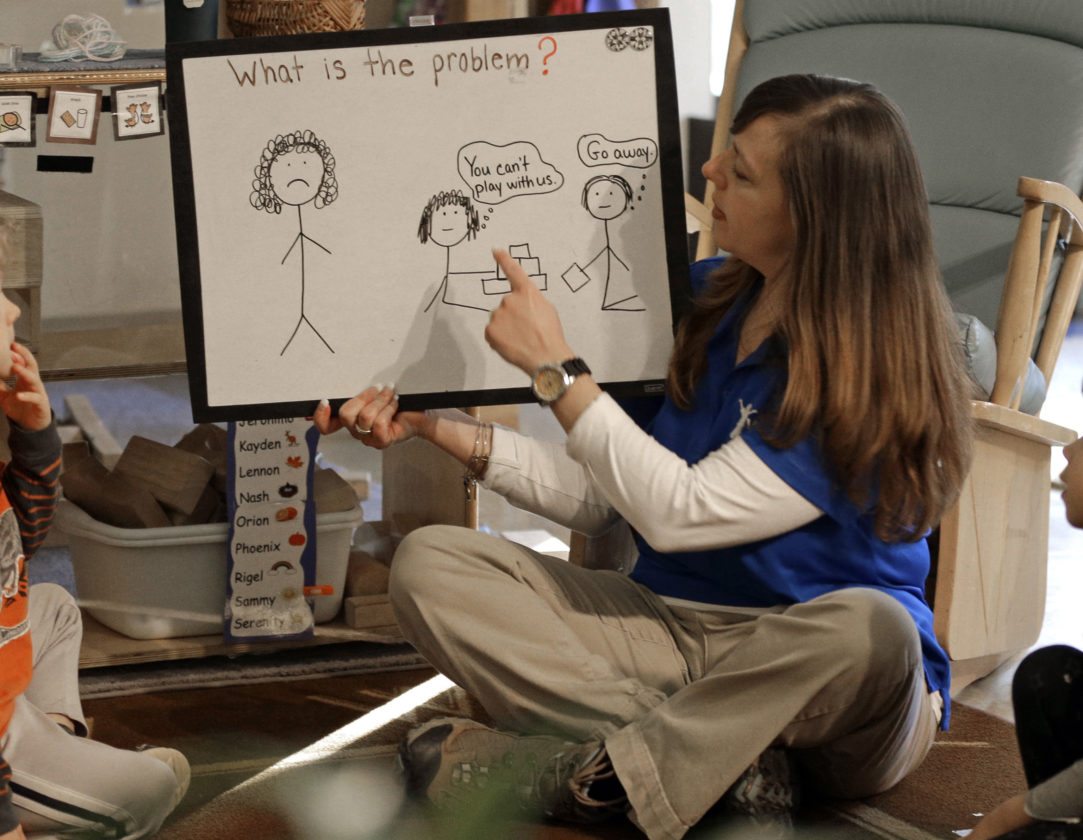 They come to school in “fight or flight” mode, unfocused and withdrawn or aggressive, sometimes kicking and screaming at their classmates. Instead of adding to that stress with aggressive discipline, the goal is to take stress away.