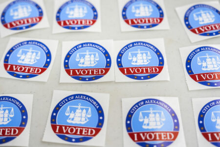 - “I Voted” stickers are laid out on a table at Lyles-Crouch Traditional Academy on election day for the Virginia redistricting referendum, Tuesday, April 21, 2026, in Alexandria, Va. (AP Photo/Julia Demaree Nikhinson)