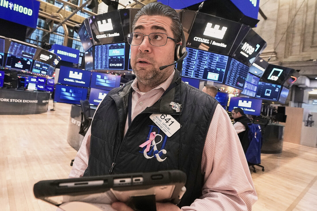Trader Michael Capolino works Friday on the floor of the New York Stock Exchange. (AP Photo/Richard Drew)