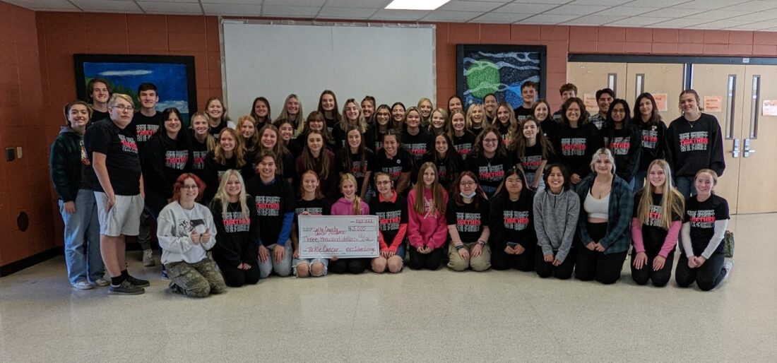Members of EHS Silver Linings raised over $3,700 for the Delta County Cancer Alliance through the sale of t-shirts and a Miracle Minute money collection held at the Escanaba/Gladstone game on October 21. This donation will go to help local families with transportation costs that accrue while seeking treatment. The groups could not have raised the money had it not been for the help of the generous community sponsors.