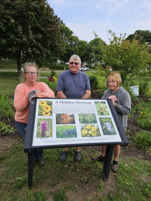 The final work session at the Heritage Garden has been completed for the season with the addition of mulch and native plant species. Bay de Noc Gardeners and volunteers included Ann Bissell, Henry Knoch and Carolyn Bissell. Not pictured are Ruth Botbyll and Peter Breclaw. The Heritage Garden is being maintained cooperatively by the Bay de Noc Gardeners and the City of Escanaba and is located at the south end of Ludington Park.