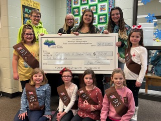 The Girl Scouts of the Northwestern Great Lakes recently received a $500 grant to help pay membership costs. The grant came from the Schoolcraft County Community Foundation’s Kellogg Fund and was awarded during the SCCF’s fall grant round. Kellogg Fund awards are based on recommendations from SCCF’s Youth Advisory Committee, which reviews youth-related grant applications. Linda Levin and members of Brownie Girl Scouts Troop 5420 accept a SCCF grant check from YAC members Lily Knaffla, Brianna Tiglas, and Kaylin Morrison.