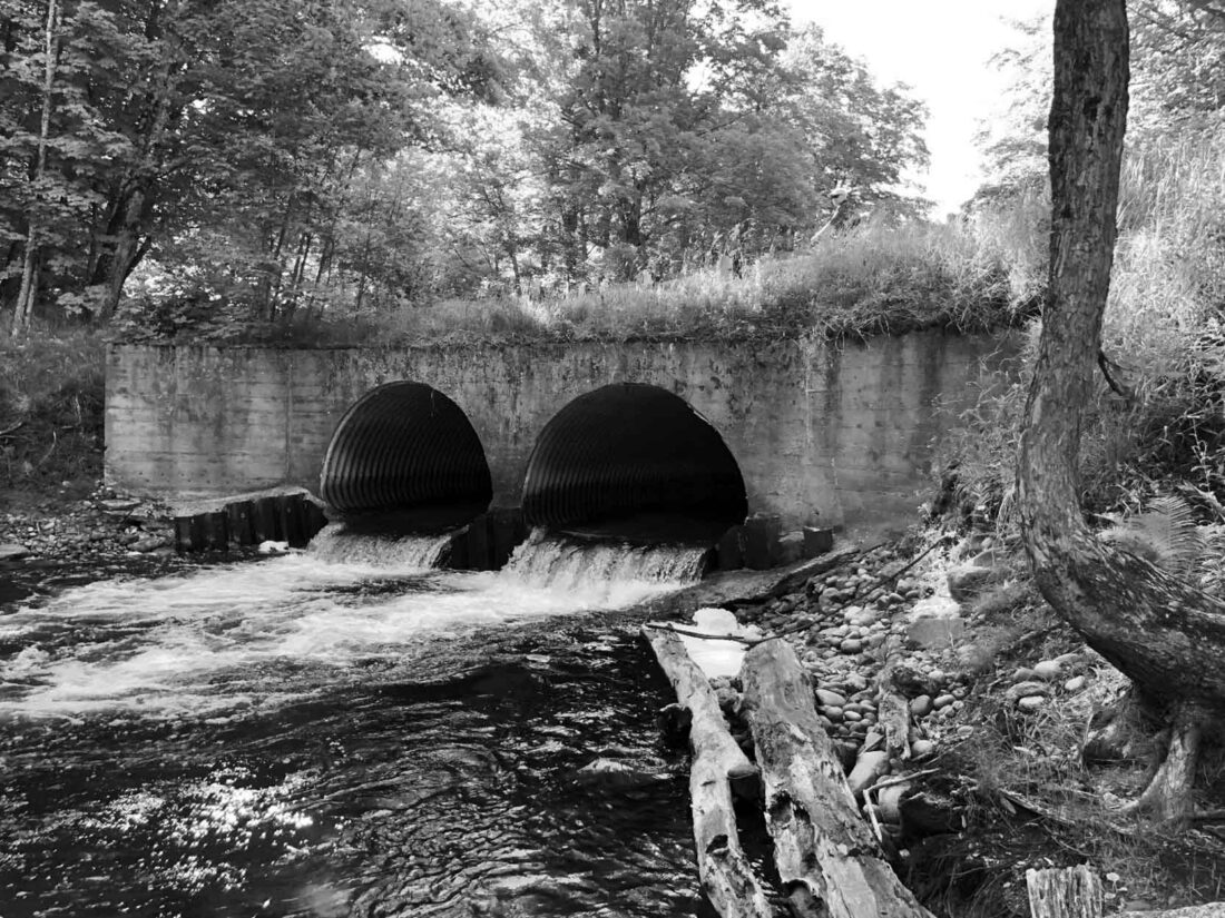 In addition, the perched culverts, which hang above the water on the downstream end, prevent fish passage for many species unable to make the jump, like brook trout and suckers. However, while preventing passage for those species, the culverts only serve as a partial barrier to sea lamprey — an invasive species that parasitizes lake trout and other fish in the Great Lakes.