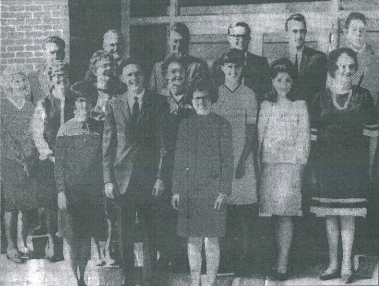 The Flat Rock Elementary School in Gladstone closed its doors about 2003. The staff of the Flat Rock Elementary School school posed for a photo back when Flat Rock was still an independent school district. The district then merged with Gladstone Area School District in 1970. From left, in front are Jody Harrison, sixth grade; Dennis Harrison, seventh grade; and Margaret Severinsen, first grade. In the second row are Mildred Ranguette, seventh grade; Joanne Christoff, kindergarten; Pearl Brady, first grade; Clifford Sutter, third grade; Mary Veach, second grade; Dan Voyle, second grade; and Guy Otoman, fourth grade. In back are Dan Hakanson, fifth grade; Wayne Christoff, eighth grade; Doug Westcott, fourth grade; Tom Vretzke, sixth grade; Wallace Slade, fifth grade; and Joseph Stevens, eighth grade. All are deceased except for Jody and Denis Harrison, Wallace Slade, Joanne Christoff and Mary Veach. (Courtesy photo)