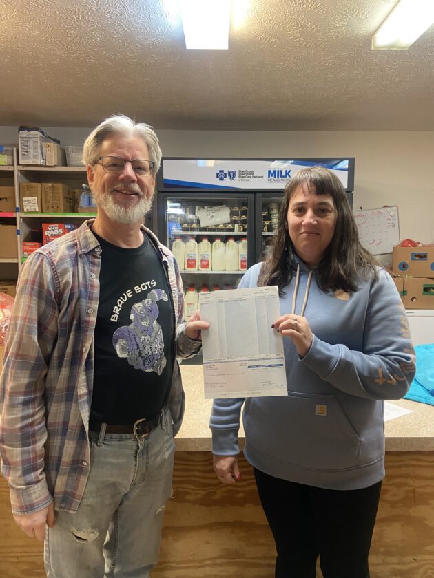 Alan Stotz, representative for the Seventh Day Adventist, receives a $396 donation from Daily Press Marketing Executive Dawn LaPine. Funds were raised from the Daily Press "Thunksgiving" ad special, in which a portion of the ad cost went directly to a local food pantry.