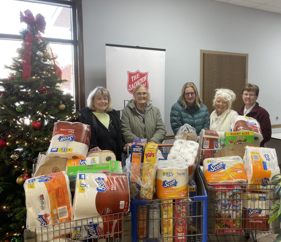 The General Federation of Women's Club – Escanaba has donated $750 worth of groceries to the Salvation Army of Escanaba. From left are Patti Hengesh, Marilyn Albrecht, Anne Michelette, Diane Lahtinen and Capt. Kim Winters of the Salvation Army of Escanaba. This is one of the many contributions GFWC makes to the organization and others in the area. (Courtesy photo)