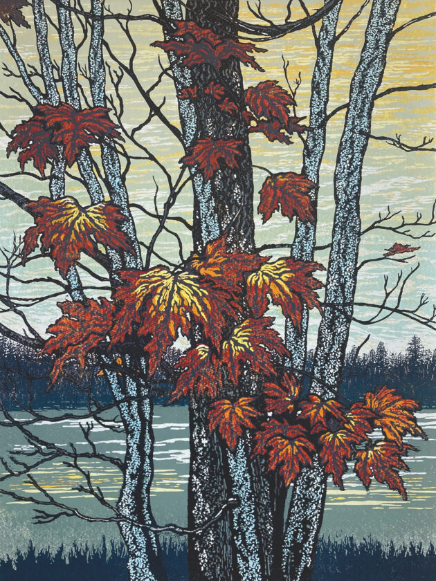 “The art I create is bound to my process of reduction printing. Hand carving and inking multiple layers of textures and colors to produce a work that invites the viewer to immerse themselves into the experience of the artist and connect at a deeper level with the subject,” said Berg.
