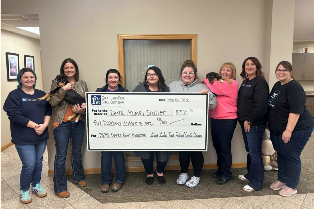 “We are proud of our staff for supporting causes that have such a meaningful impact locally,” said Becky Townsend, marketing apecialist at Great Lakes First Federal Credit Union. “It’s a simple program that allows our team to give back and support organizations doing incredible work right here in Delta County.”