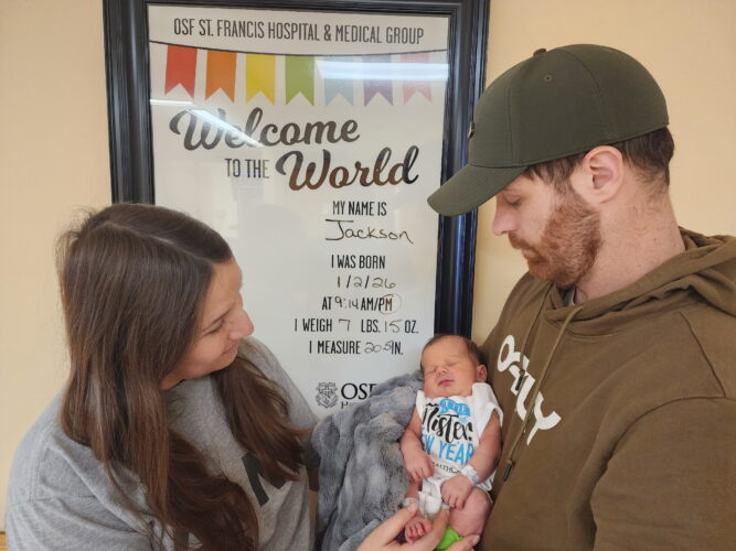 ESCANABA — OSF St. Francis Hospital in Escanaba welcomed its first baby of the year Friday — Jackson Wade Courser, a son born to Amber (Smith) Courser and Brandon Courser of Escanaba.