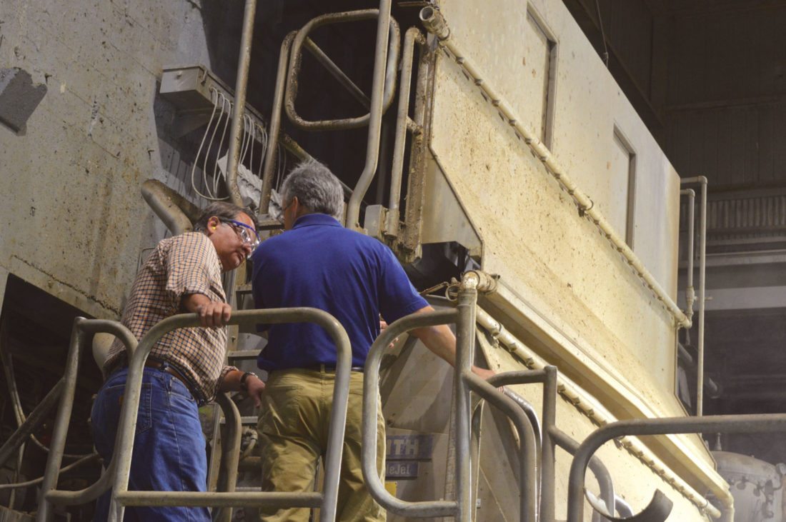 During this visit, U.P. Paper General Manager Greg Anderson showed Peters around the mill, which produces recycled kraft paper. The paper produced at the mill is used to make products such as fast food bags, shopping bags, and packaging filler.