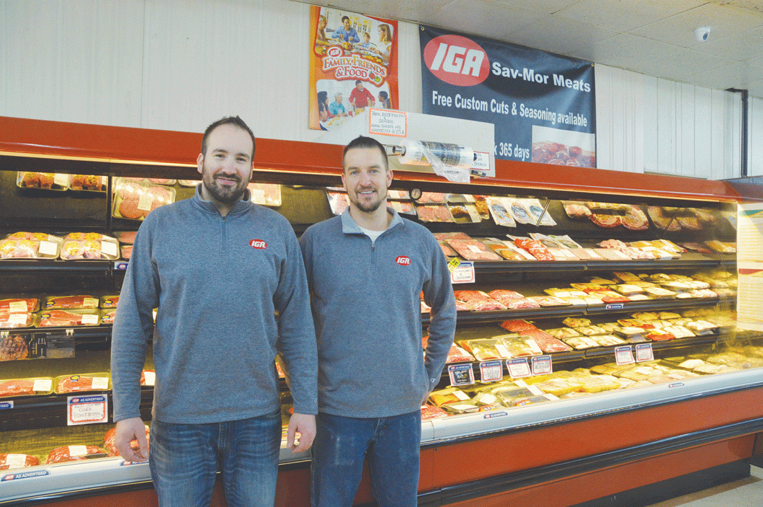Jordan Beck | Daily Press Craig Carter, left, and his brother Chris, co-owners of Escanaba grocery store Sav-Mor IGA, are pictured in the store’s meat department. The Carter brothers took ownership of the store in December 2018.