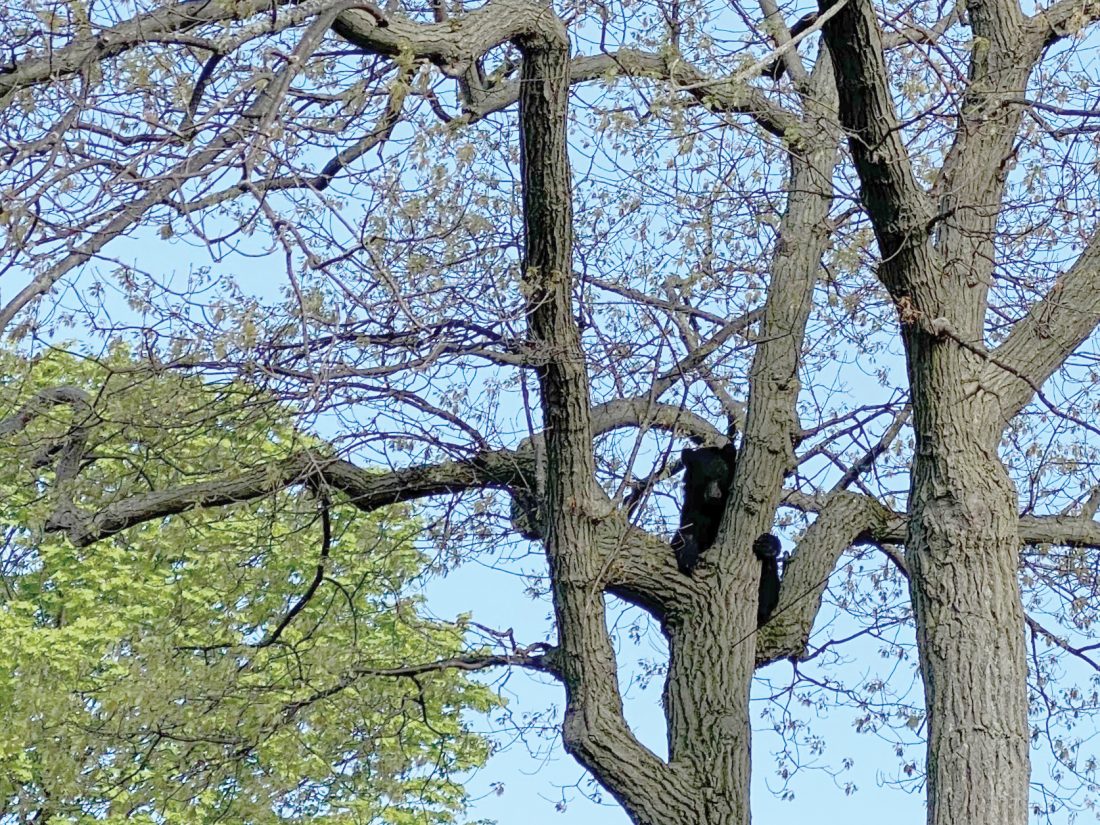 “The DNR came here this morning … about (8 a.m.) or so and notified us there was a bear up in our tree,” he said.