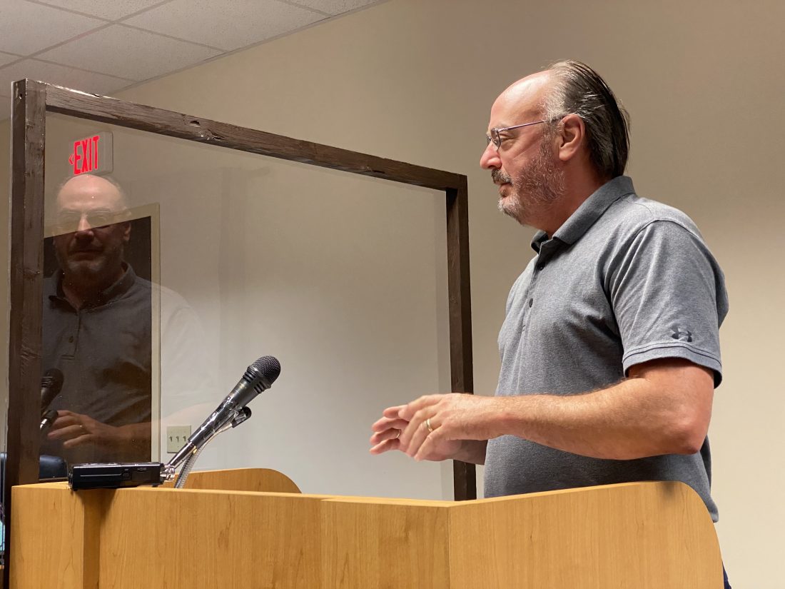 Jordan Beck | Daily Press Escanaba City Manager Patrick Jordan addresses the Delta County Board of Commissioners Tuesday. The board approved a $10,000 payment to the City of Escanaba during its meeting that day, which will support the city in its continued tax dispute with Menards.