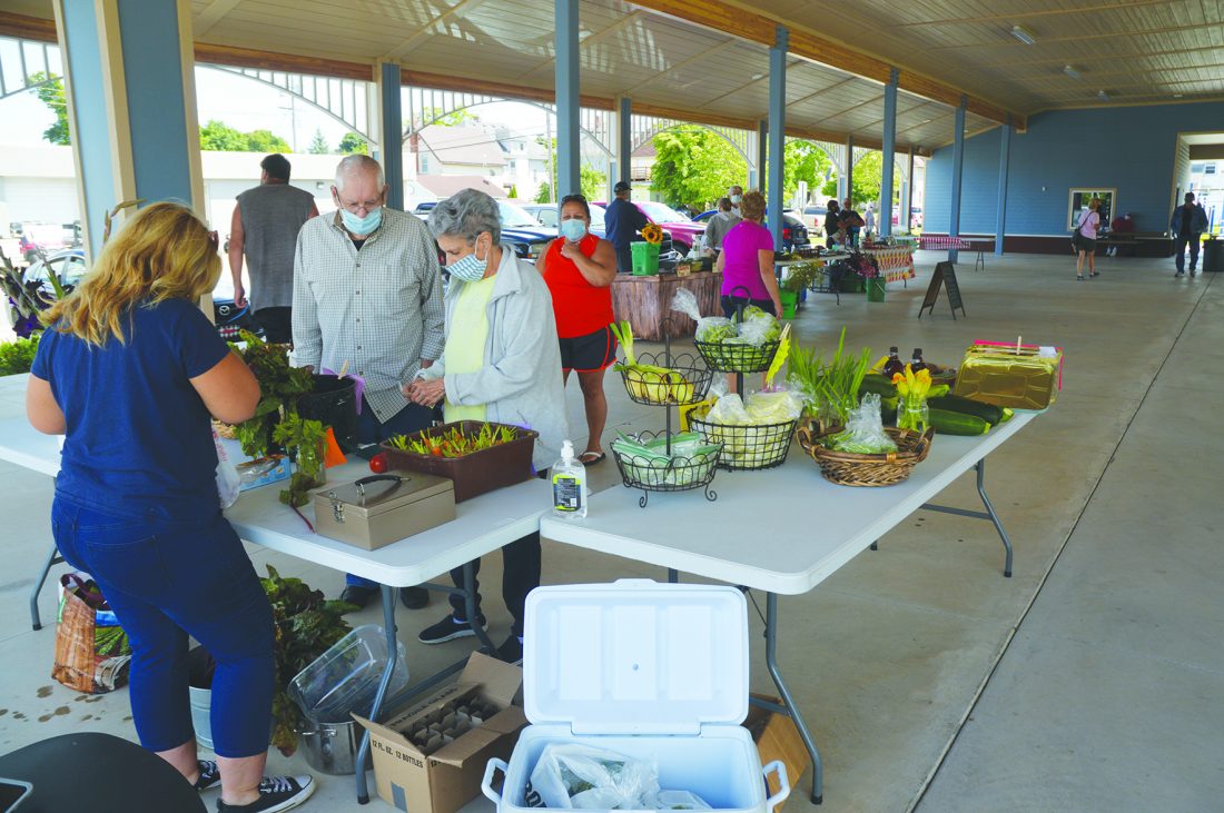 Daily Press photo Shoppers gather at the Escanaba Farmers Market on Ludington Street earlier this year. The market plans to remain open through the end of October. The market is open Wednesdays from 3 to 6 p.m. and Saturdays from 9 a.m. to noon.