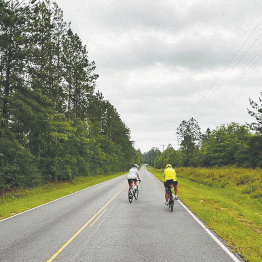 Lynn Lancour and Stuart Spaude cycle through the Deep South as part of the Gears N Grind cross-country fundraiser for the Leukemia & Lymphoma Society recently. Lancour said they drove on “no shoulder all day” but arrived as hoped in Orange Beach, Ala. on May 19 in time for Lancour’s 60th birthday. Lancour and companions began the trek in San Diego on April 8 en route to St. Augustine, Fla. and are only $8,000 shy of a $50,000 goal. She said despite stormy weather, dog chases and wipeouts, the group has seen an interesting slice of America while pursuing an important goal. A former local resident, Lancour is the daughter of Bill and Liz Lancour of Escanaba. To donate or for more information, go to gearsngrind.com