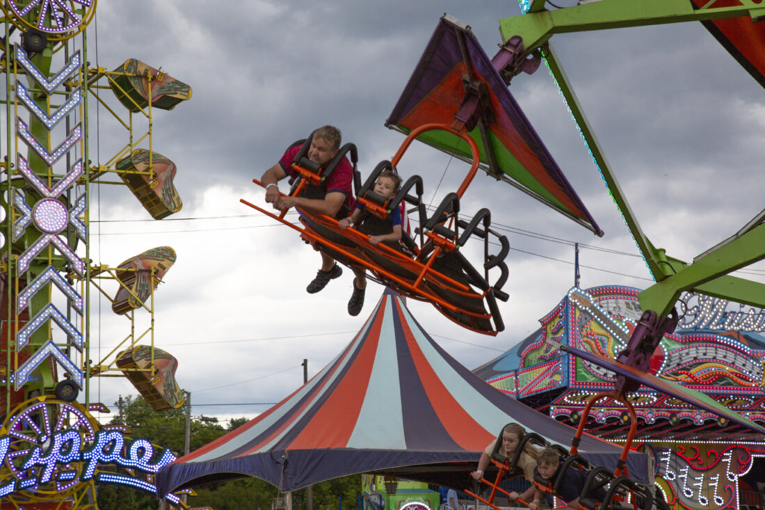 Above, fairgoers enjoy one of the thrill rides at the U.P. State Fair. Today is Honored Citizens Day at the fair and seniors and Native Americans can enter the fairgrounds for $5. Veterans with a DD 214 military service verification form can enter for free. At 11 a.m., the Veterans Award Ceremony will commence, which will honor the 2022 U.P. Veteran of the Year Tracey Ann Tippet. The Governor’s Luncheon begins at 12 p.m. The Native American Celebration will commence at 2 p.m. Overall showmanship for livestock will be taking place at 6:30 p.m. Grandstand entertainment tonight is Puddle of Mudd, with doors opening at 7 p.m. and the show starting at 8 p.m.