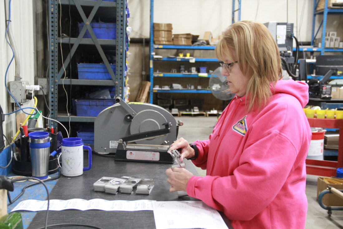 - Sam Marenger bends a piece of steel into the shape of what will become a bracket for one of VanAire’s linkage kits. (R. R. Branstrom | Daily Press)