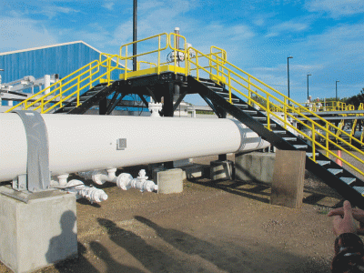 - This October 2016 file photo is an aboveground section of Enbridge’s Line 5 at the Mackinaw City pump station. (AP photo, file)