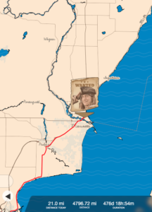 A screenshot of Peter Frank's tracking map at z6z.co/the-great-loop-project on Friday night shows the Escanaba man and his canoe had crossed into Menominee County, bringing him back to the Upper Peninsula.