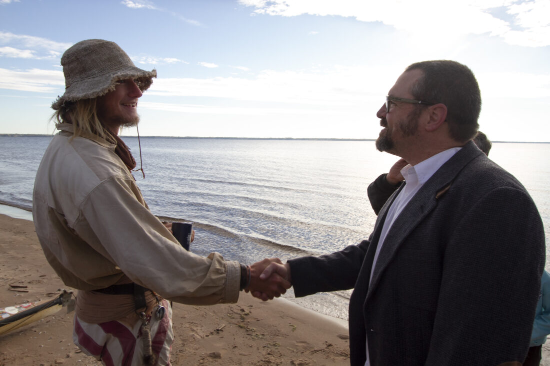 After he stepped out and pulled the small boat onto the sand, the first words out of Peter’s mouth after he tossed his iconic tricorne hat into the air were a Forrest Gump quote: “I’m pretty tired. I think I’ll go home now,” he uttered in a drawl.