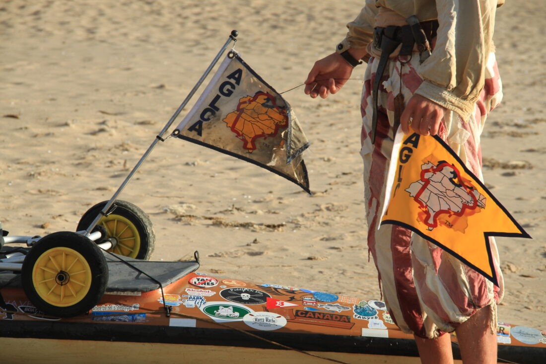 - Peter holds a new America’s Great Loop Cruisers’ Association burgee while indicating one on his canoe that has been with him since New York. (R. R. Branstrom | Daily Press)