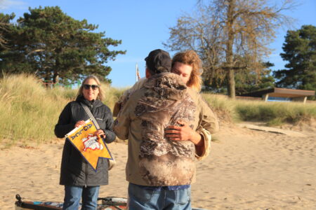 Kevin Chown, who’d hosted the canoeist that final night, spoke highly of the young man as people surrounded Peter on the beach.