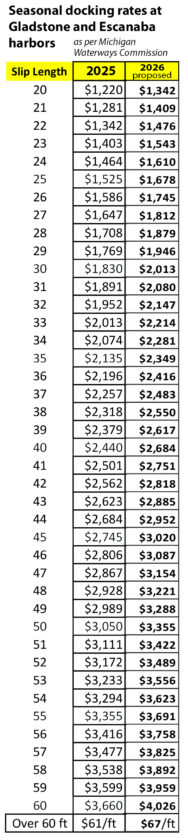 Escanaba’s Harbor Advisory Committee similarly voted to adopt the Michigan Waterways rates, though Harbor Master and Recreation Director Kim Peterson noted the new fees won’t officially be set until Escanaba City Council approves the budget early next year.